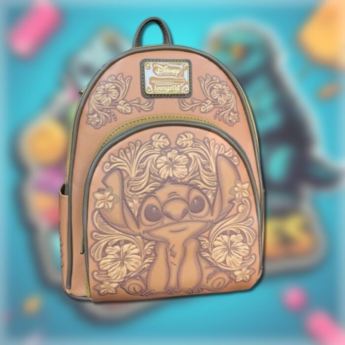 Ohana means family, and this adorable Loungefly Disney Lilo & Stitch Tonal Stitch Carving Mini Backpack is ready to join yours! This unique backpack features a beautifully embossed, tonal design of Stitch surrounded by tropical Hawaiian flowers. The subtle carving adds a touch of elegance and texture to the playful character. Crafted from high-quality faux leather in a warm tan hue with contrasting trim, this mini backpack is both stylish and durable. With adjustable shoulder straps, secure zip closures, and side pockets, it’s perfect for carrying your essentials with a touch of Disney magic. Show your love for Stitch and the spirit of ‘ohana wherever you go!