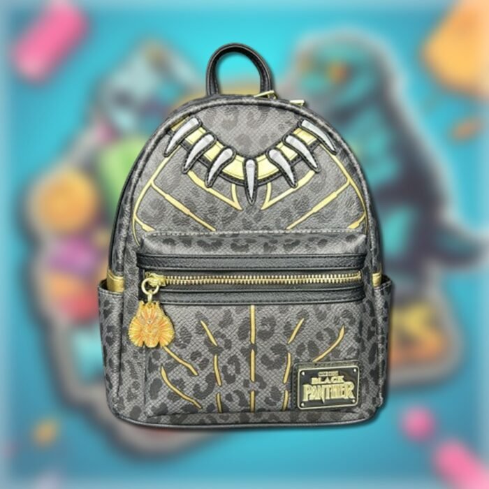 Wakanda Forever! Embrace the power and intensity of Erik Killmonger with this striking Loungefly Marvel Studios Black Panther Killmonger Mask Mini Backpack. This fierce backpack is inspired by Killmonger’s iconic golden jaguar mask and features intricate detailing, including metallic gold accents and claw-like designs. The backpack showcases a subtle leopard print texture and includes a thematic zipper charm. With adjustable shoulder straps, side pockets, and a spacious main compartment, it’s perfect for carrying your essentials with a touch of Wakandan edge. Show your allegiance to the powerful Killmonger with this unique and bold Marvel accessory!